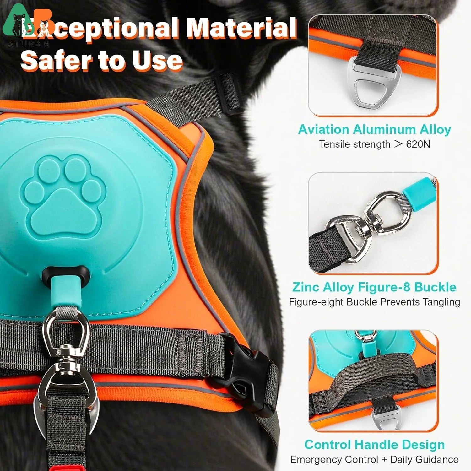 Top Material + Easy On/Off: The outer layer of dog vest harness is made of enhanced high-density wear-resistant waterproof nylon oxford cloth, the inner layer features a soft and breathable mesh design, and the interior is padded for maximum comfort.