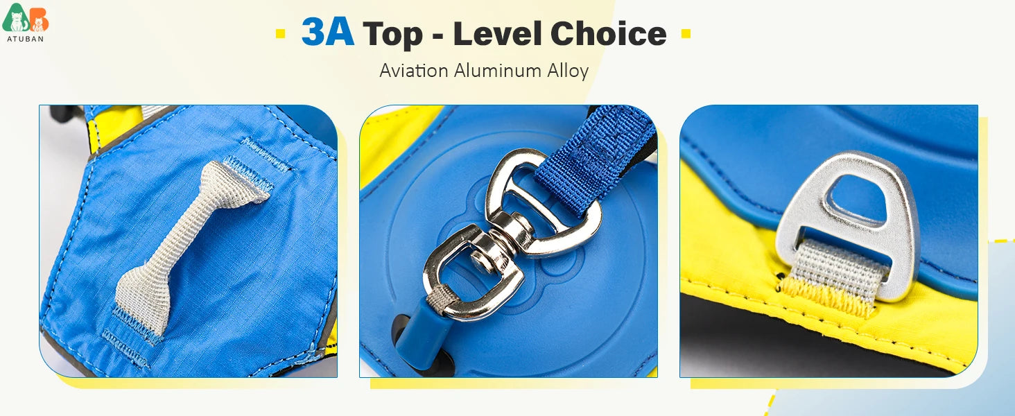 Aluminum D-rings and Zinc Figure-8 Buckles: The back D-ring of this harness specially designed for large dogs is made of top-grade aviation aluminum alloy. Compared with ordinary metals, it is more durable, lighter, safer and more reliable. Additionally, the front buckle provided can be used for attaching dog lights and name tags; it is also suitable for walking, jogging, and can be used to secure poop bag holders. The figure-8 buckle on the handle can effectively prevent the leash from tangling.